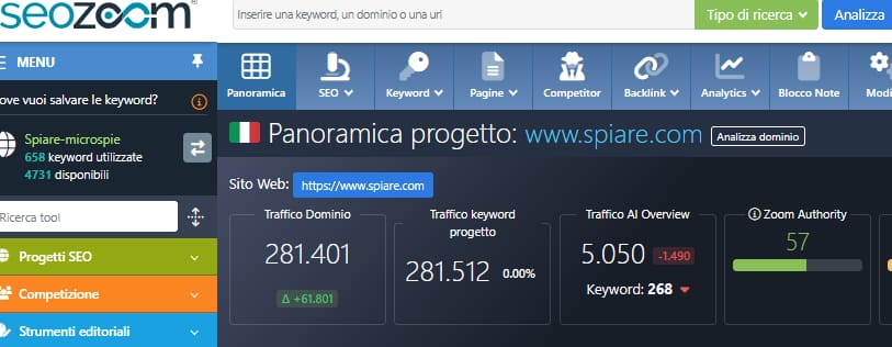 - Zoom Authority (ZA): Una metrica importante per l’autorità del sito.